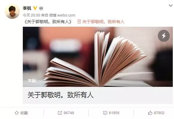 郭敬明昨晚已经回应!此事件背后是炒作还是另有隐情?详情请看第二篇推文!